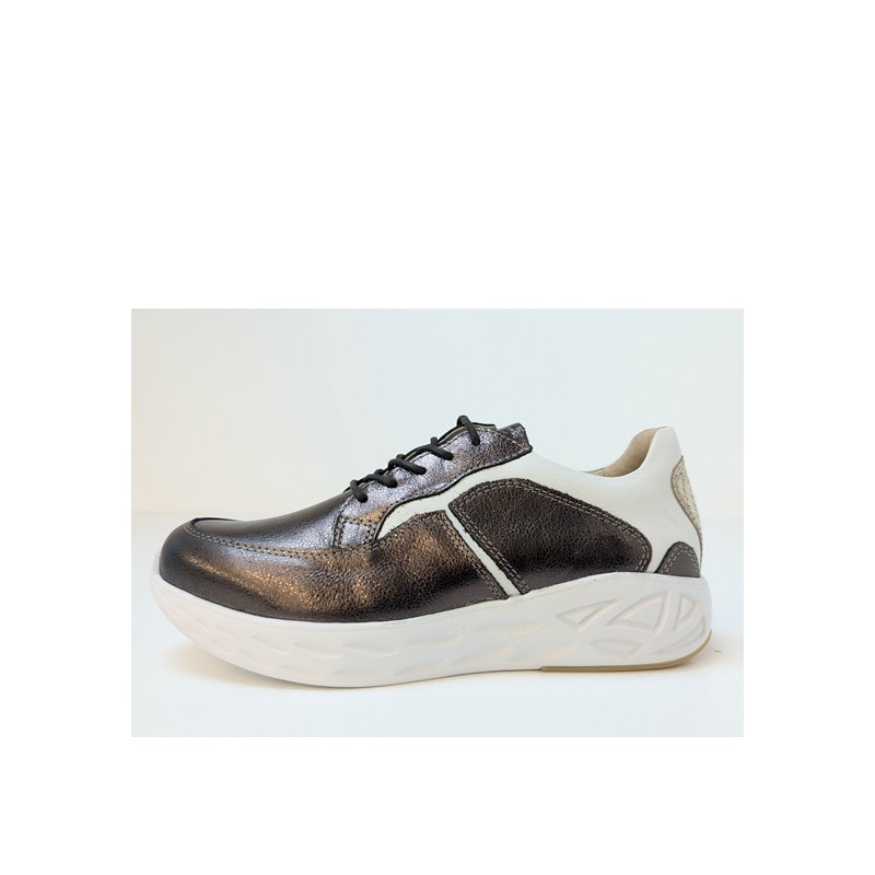 Deze stijlvolle Wolky sneaker Bounce is een veterschoen met een geweldige demping. Helemaal trendy is de prachtige bruine metallic kleur. Ook de achterkant van de schoen is een eye catcher. Een hielstuk van prachtig crocoleer in een beige tint. De schoen is voorzien van een lichtgewicht zool en de polsterband voelt zacht aan, als een kussentje om je voet. Het voetbed is uitneembaar, dus de Bounce is geschikt voor het dragen van steunzolen. De sneaker heeft aan de binnenzijde een onopvallende rits. Op deze prachtige exclusieve Wolky sneaker blijf je lopen!