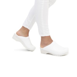 De Sanita Flex 314 instapklomp is een comfortabele medische klomp in de kleur wit. Deze Sanita klomp is gemaakt van gecoat leer. Hierdoor zijn de klompen goed schoon te maken en blijven ze mooi. Deze hygiënische klomp heeft een open hiel en is verkrijgbaar in verschillende basiskleuren.