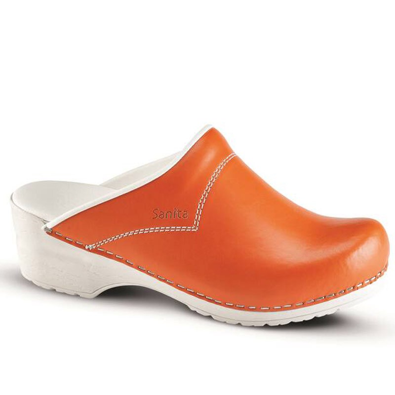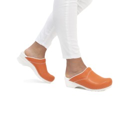De Sanita Flex 314 instapklomp is een comfortabele medische klomp in de kleur oranje. Deze Sanita klomp is gemaakt van gecoat leer. Hierdoor zijn de klompen goed schoon te maken en blijven ze mooi. Deze hygiënische klomp heeft een open hiel en is verkrijgbaar in verschillende basiskleuren.
