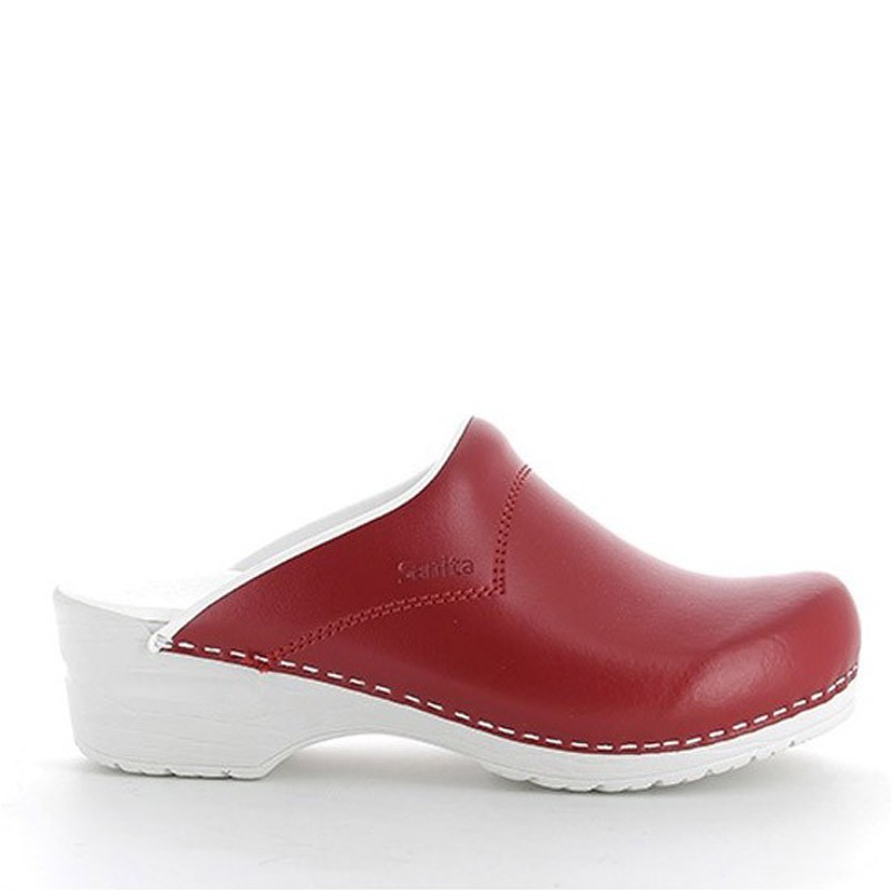 De Sanita Flex 314 instapklomp is een comfortabele medische klomp in de kleur rood. Deze Sanita klomp is gemaakt van gecoat leer. Hierdoor zijn de klompen goed schoon te maken en blijven ze  mooi. Deze hygiënische klomp heeft een open hiel en is verkrijgbaar in verschillende basiskleuren.
