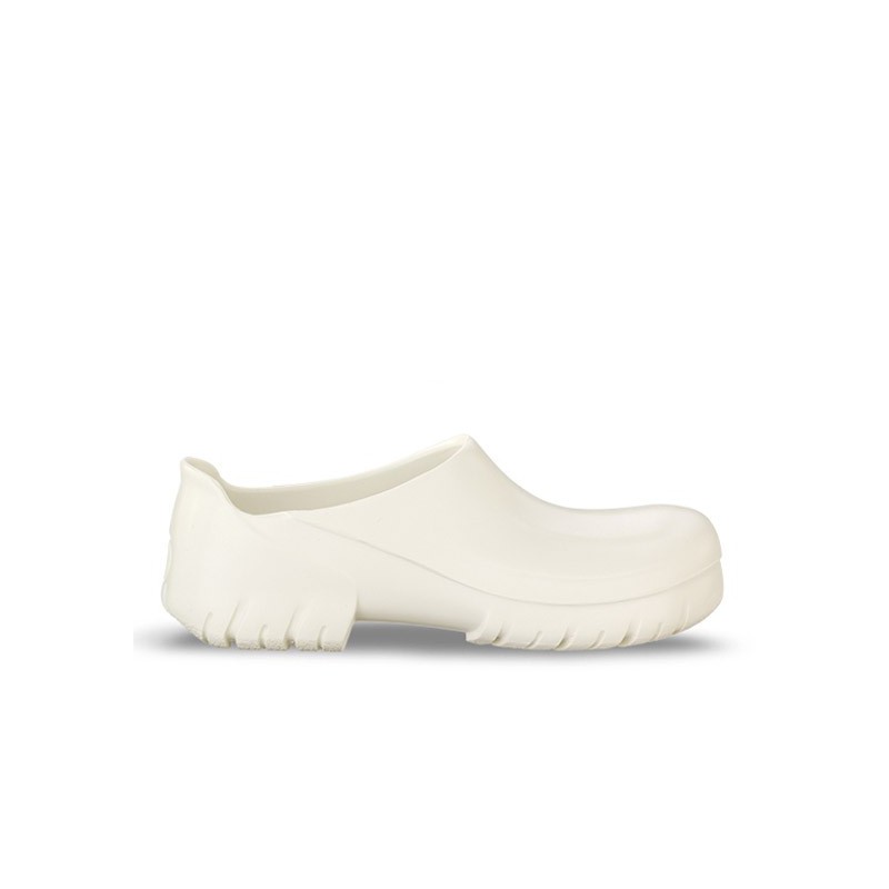 BIRKENSTOCK Alpro A 640 with steel toe cap white regular. Kunststof klompen met stalen neus gemaakt van Polyurethaan, de klompen zijn waterdicht en zijn voorzien van een uitneembaar voetbed.